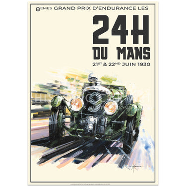 Le Mans 24 Hours race was won in 1930 by Barnato and Kidston for Bentley. Birkin and his supercharged Bentley entered by Dorothy Paget did not finish having won the year before. This is a modern interpretation of the original poster featuring artwork from the Racing Legends series.