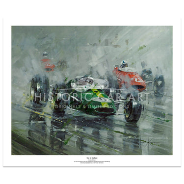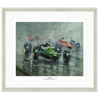 Having begun with photo-realism which Ketchell quickly found frustrating he moved towards his now recognisable impressionistic, semi-abstract style. “I was a fan of the French Impressionists, and thought it would be a good direction to capture speed.” Acrylics suited his new style and his bold captivating paintings were soon in demand: “Jim Clark was my hero and the 1960’s and 30’s are my favourite periods. The shape of the subjects is a key factor and the big sports-prototypes such as the 917, T70 and GT40 have always excited me. The balance of danger against speed of the silver arrows – particularly the Auto Unions – is also part of the appeal.”