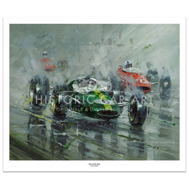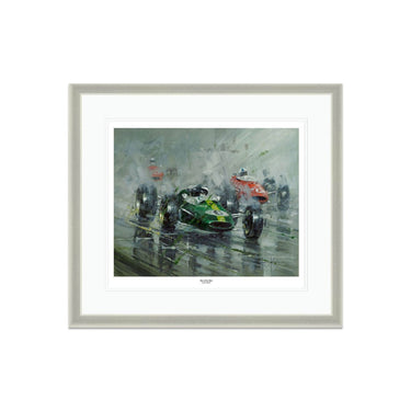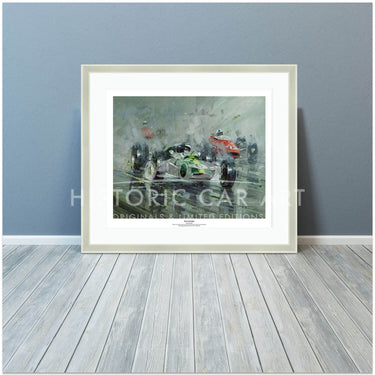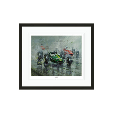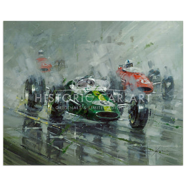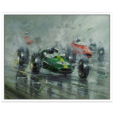 Limited Edition Print. Jim Clark winning the non-championship 1964 Solitude Grand Prix at the Solitudering, 2nd placed Ferrari 158 of John Surtees follows.