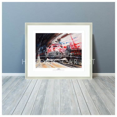 Having begun with photo-realism which Ketchell quickly found frustrating he moved towards his now recognisable impressionistic, semi-abstract style. “I was a fan of the French Impressionists, and thought it would be a good direction to capture speed.” Acrylics suited his new style and his bold captivating paintings were soon in demand: “Jim Clark was my hero and the 1960’s and 30’s are my favourite periods. The shape of the subjects is a key factor and the big sports-prototypes such as the 917, T70 and GT40 have always excited me. The balance of danger against speed of the silver arrows – particularly the Auto Unions – is also part of the appeal.”