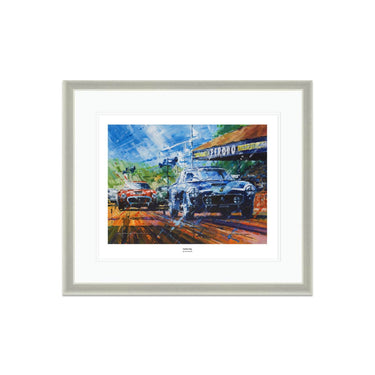 John Ketchell is internationally renowned as a motorsport artist. Ketchell has been commissioned to produce work by many leading companies and private individuals. His Impressionist style allows him to really portray the feeling of speed and movement in his spectacular paintings. “I’ll paint anything that moves” he explains “I’ve done speedboats, aircraft and horses in a polo-themed series, but cars are my first love.”