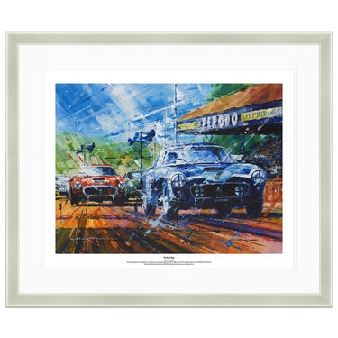 Having begun with photo-realism which Ketchell quickly found frustrating he moved towards his now recognisable impressionistic, semi-abstract style. “I was a fan of the French Impressionists, and thought it would be a good direction to capture speed.” Acrylics suited his new style and his bold captivating paintings were soon in demand: “Jim Clark was my hero and the 1960’s and 30’s are my favourite periods. The shape of the subjects is a key factor and the big sports-prototypes such as the 917, T70 and GT40 have always excited me. The balance of danger against speed of the silver arrows – particularly the Auto Unions – is also part of the appeal.”