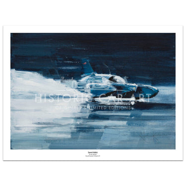 The sucessful first high speed pass down Coniston Water is aptured beautifully here in this print by John Ketchell.