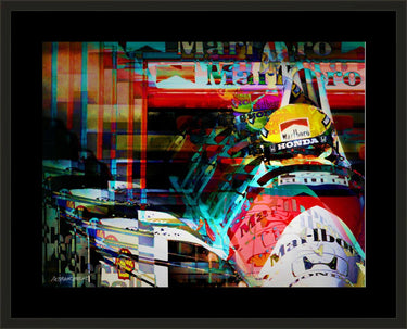 Art print of Ayrton Senna at the 1990 San Marino Grand Prix. He had to retire on lap 3 because of a broken wheel rim.