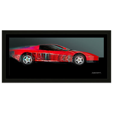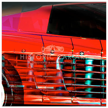 Over time, Barber has developed a collection of artwork of classic and contemporary cars. He creates the artworks as digital images, drawing and painting by hand on a tablet or screen before having a single large scale version printed onto a brushed aluminium panel.