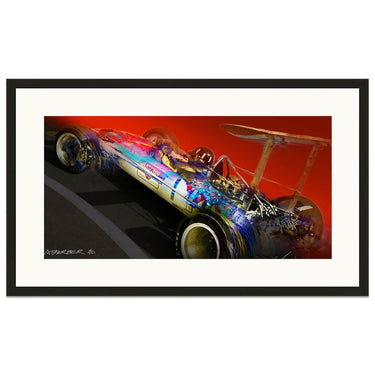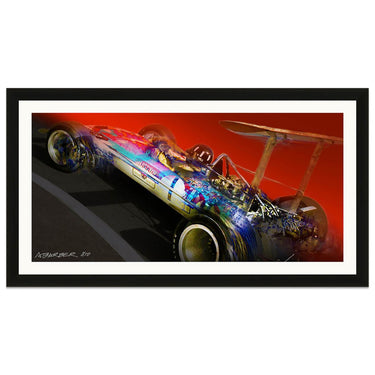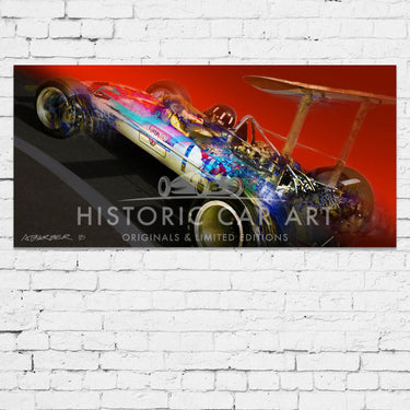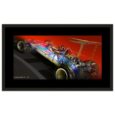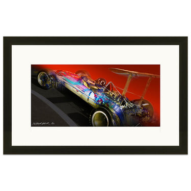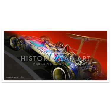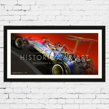 The most successful Grand Prix car - the Lotus 49. Available as a Giclee on paper, or high-resolution digital print on brushed aluminium in very small numbers.