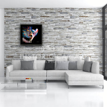 Over time, Barber has developed a collection of artwork of classic and contemporary cars. He creates the artworks as digital images, drawing and painting by hand on a tablet or screen before having a single large scale version printed onto a brushed aluminium panel.