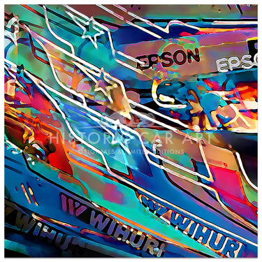 In his striking, dynamic impressionistic art prints Barber strives to convey the motion of the racing car on the senses. Both visual and aural. Read our interview with Andrew Barber in our news pages.