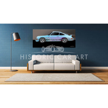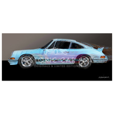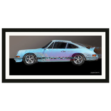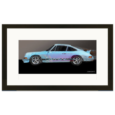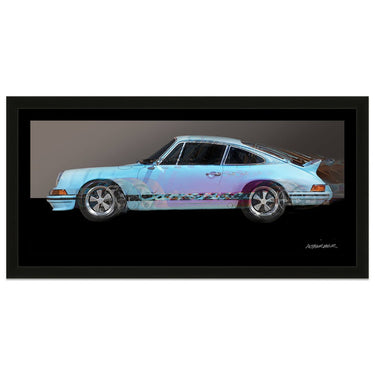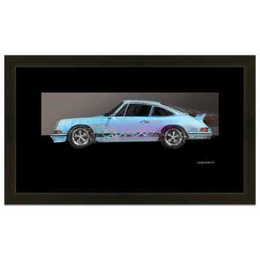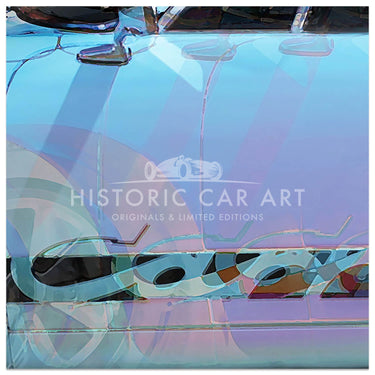 Over time, Barber has developed a collection of artwork of classic and contemporary cars. He creates the artworks as digital images, drawing and painting by hand on a tablet or screen before having a single large scale version printed onto a brushed aluminium panel.