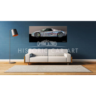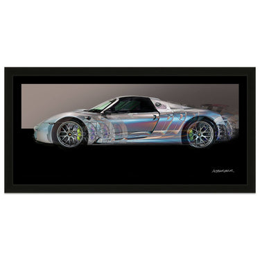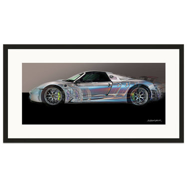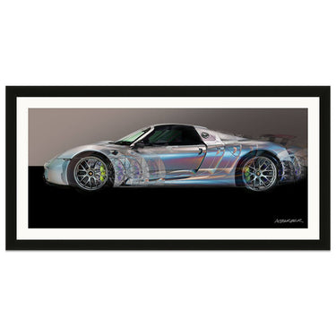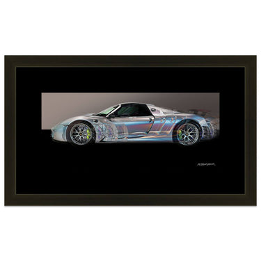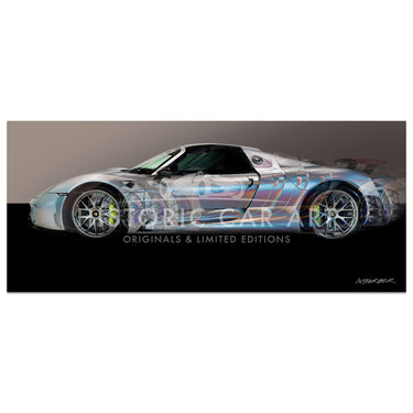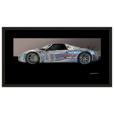 Over time, Barber has developed a collection of artwork of classic and contemporary cars. He creates the artworks as digital images, drawing and painting by hand on a tablet or screen before having a single large scale version printed onto a brushed aluminium panel.