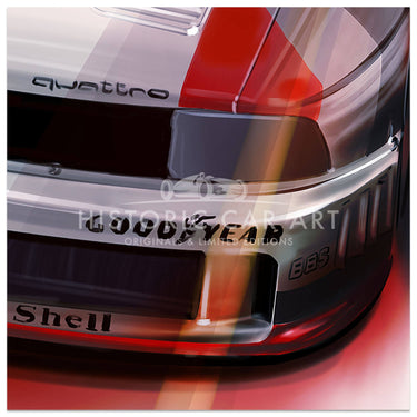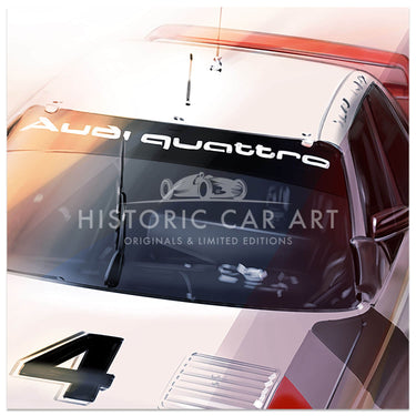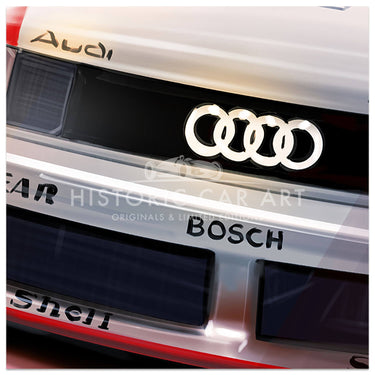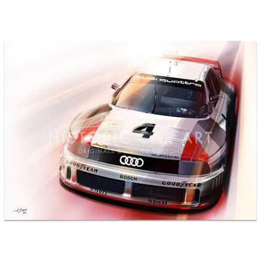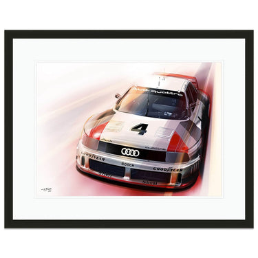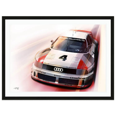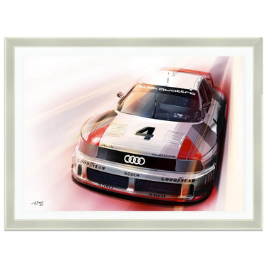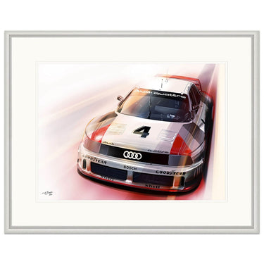 Contemporary art print by designer Frederic Dams, of the 1989 Audi 90 Quattro IMSA GTO, an absolute beast of a car that influenced the American sports car racing forever.