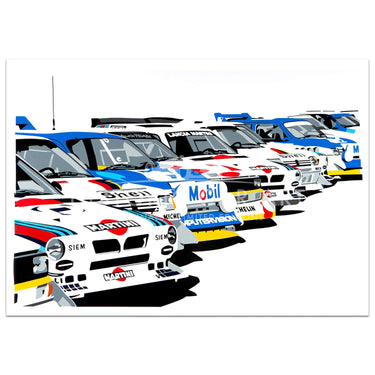 Limited Edition Print of a SPEED ICON: The Group B rally legends: Audi Quattro, Lancia Integrale, Metro 6R4.