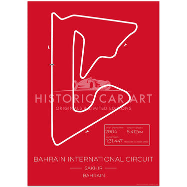 Bahrain International Grand Prix Circuit Sakhir. This circuit is currently used to host the Formula 1 / F1 world championship race each year. The circuit lap record is currently held by Pedro de la Rosa (2005). This contemporary poster shows the circuit in its current layout in a clean, minimalistic and stylish poster.