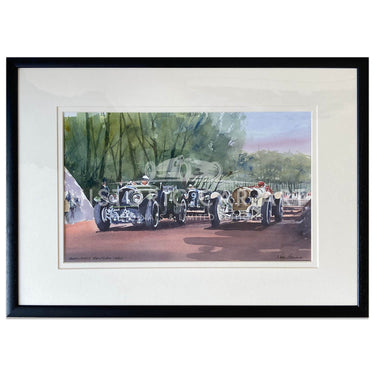 An original watercolour painting by Neil Collins of the Woolf Barnato / Glen Kidston Bentley Speed Six, which won the 1930 Le Mans endurance race.