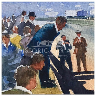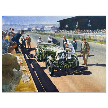 Original Painting of the winning Bentley Six Speed of Woolf Barnato & Glen Kidston, in the pit lane at Le Mans in 1930.