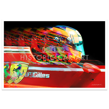 In his striking, dynamic impressionistic art prints Barber strives to convey the motion of the racing car on the senses. Both visual and aural. Read our interview with Andrew Barber in our news pages.