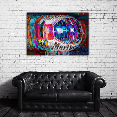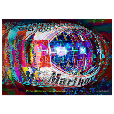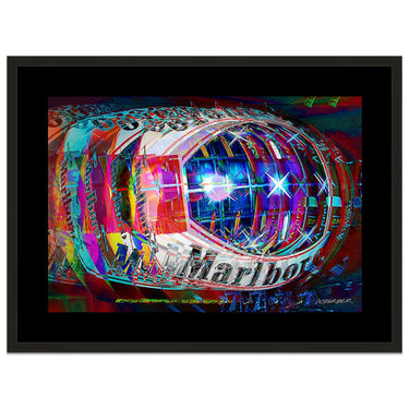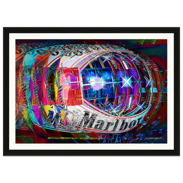 In his striking, dynamic impressionistic art prints Barber strives to convey the motion of the racing car on the senses. Both visual and aural.