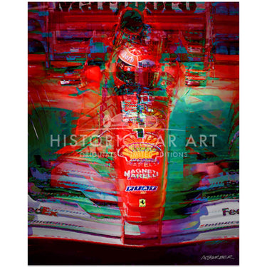 Art print of Michael Schumacher, at the 2001 Belgian Grand Prix. He qualified in third position and went on to win the race.