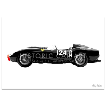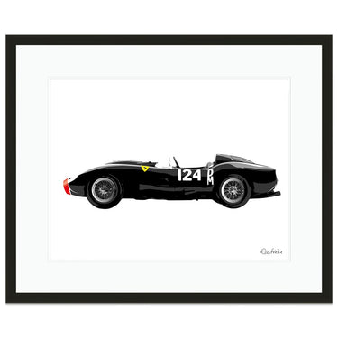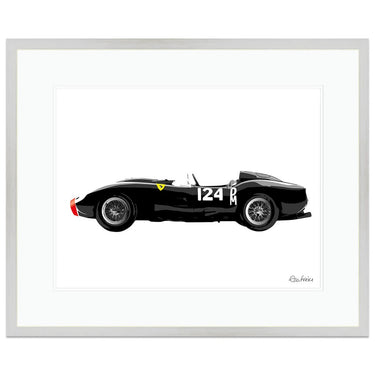 Wonderful limited edition print by Ella Freire of a 1959 Ferrari Testarossa in black. The Ferrari 250 Testarossa is one of the most famous Scaglietti designs.