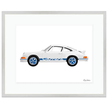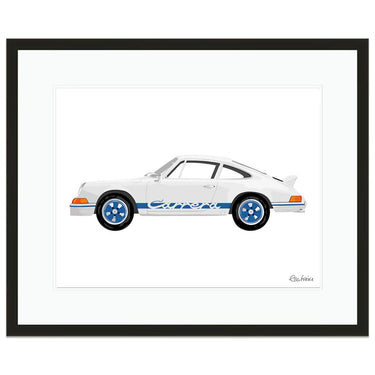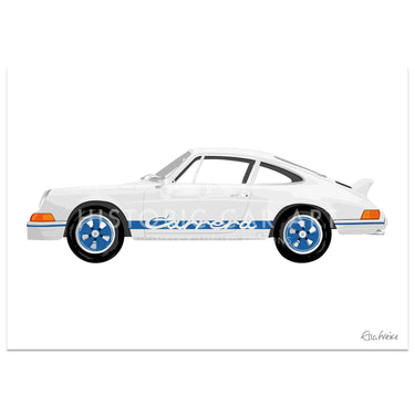 Fantastic limited edition print by Ella Freire of the 1973 Porsche 2.7 RS with blue decals.