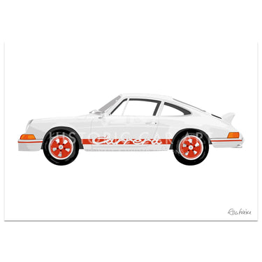 Fantastic limited edition print by Ella Freire of the 1973 Porsche 2.7 RS with red decals.