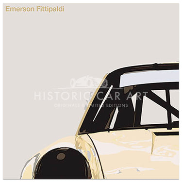 A contemporary art poster featuring the Porsche RSR of Emerson Fittipaldi as raced in the 1973 & 1974 International Race of Champions.