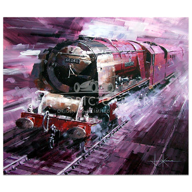 A dynamic contemporary original painting of the LMS Coronation Class locomotive City of Coventry.