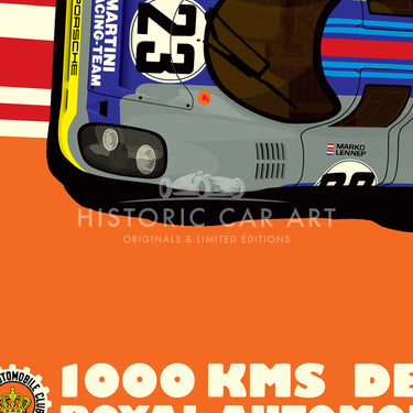 It shows the Martini Racing Porsche 917K driven by Helmut Marko and Gijs van Lennep.