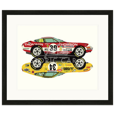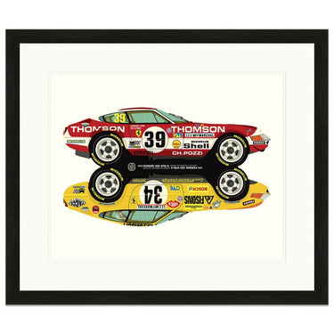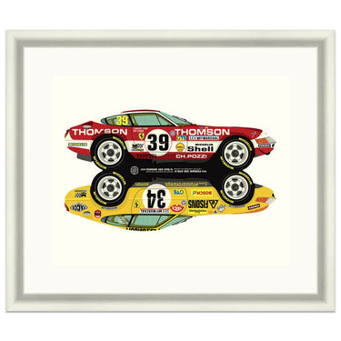 The artwork for each Studio Bilbey print is hand-drawn from scratch - including all the lettering and sponsors logo's, after extensive research into each cars race history and the graphics it carried. The result is the fresh, bold, clean-cut artwork you see here.
