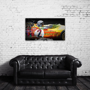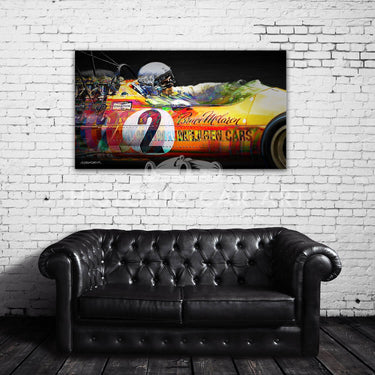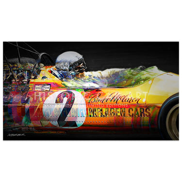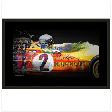 Art print of Bruce McLaren in his McLaren-Ford M7A in 1968.