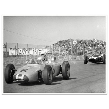 This photograph shows Jo Bonnier in his Porsche 718, leading the Cooper-Climax of Bruce McLaren during the 1961 Dutch Grand Prix.