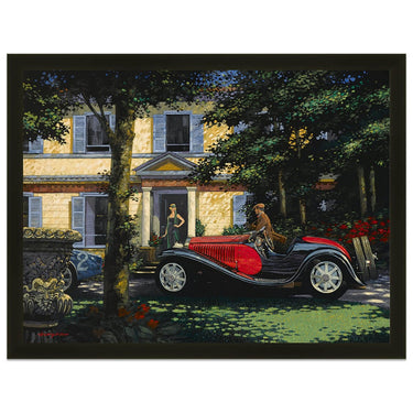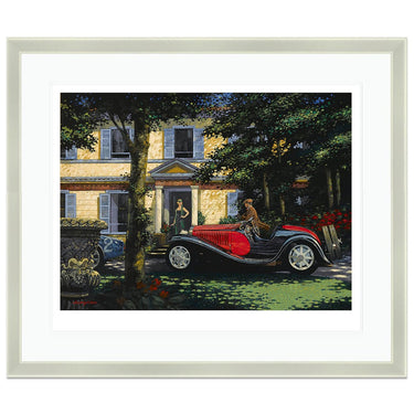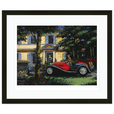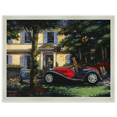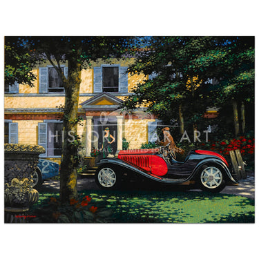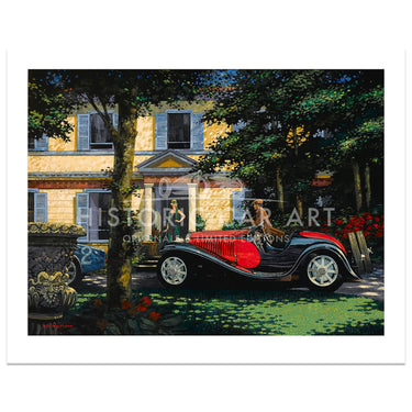 Limited Edition Print. What better way to spend an afternoon than a round of golf with the chaps, followed by a spirited drive home in the Bugatti type 55 to be welcomed by a beautiful lady and a 35B.