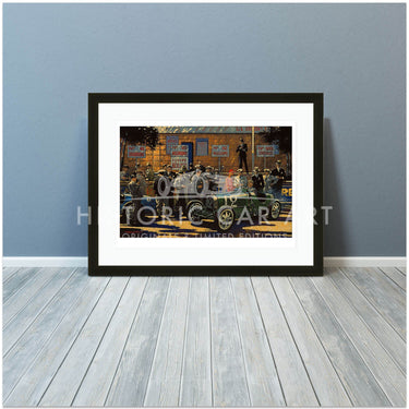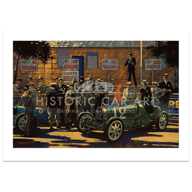 Limited Edition Print. The Bugatti pits at the inaugural Monaco Grand Prix 1929.