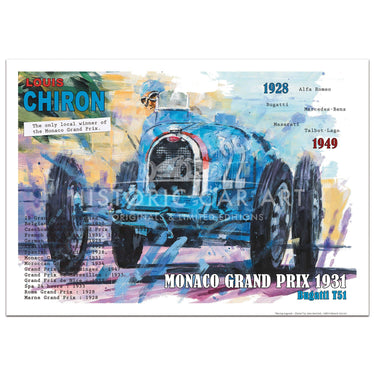 Louis Chiron the only local winner of the Monaco Grand Prix drives his Bugatti Type 51 to victory 1931.
