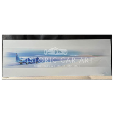 This stunning print by Frederic Dams demonstrates the lonliness of the Land Speed Record drivers. Just Driver, machine and a vast open space.... in this case Lake Eyre, Australia. Donald Campbell and Proteus Bluebird CN7 achieve the record speed of 403.10mph on 17th July 1964.