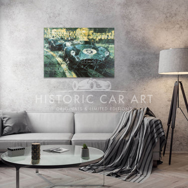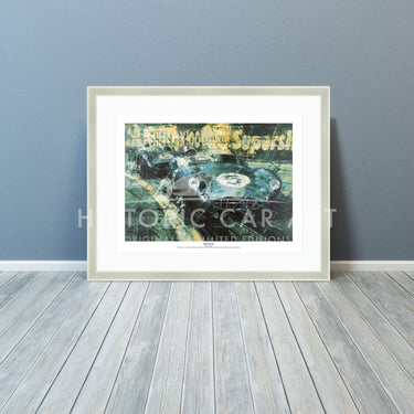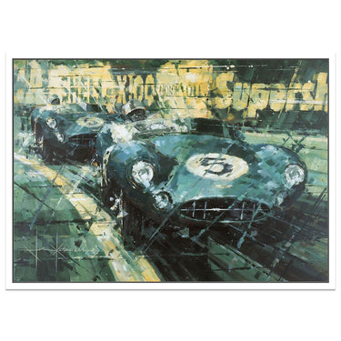 Limited Edition Print by John Ketchell. 1959 Le Mans - the Carroll Shelby / Roy Salvadori Aston Martin DBR1 leads the Maurice Trintignant / Paul Frère DBR1 to an historic Aston One Two