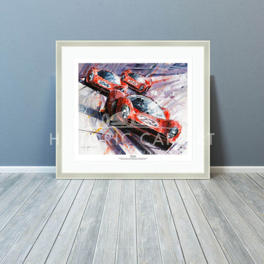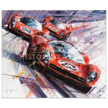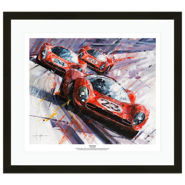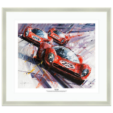 Limited Edition Print. 1967 Daytona 24 hours - Bandini / Amon driving the winning Ferrari 330P3/4 leading the 2nd placed Ferrari 330P4 of Parkes / Scarfiotti and 3rd placed Ferrari 412P of Rodriguez / Guichet