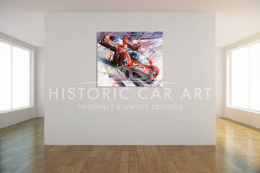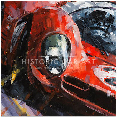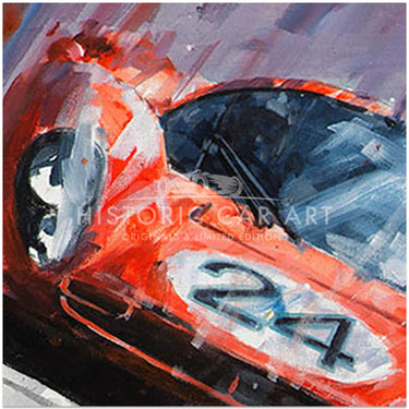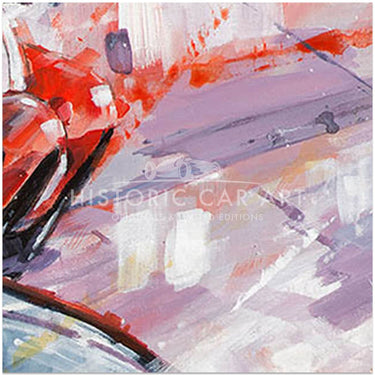 Having begun with photo-realism which Ketchell quickly found frustrating he moved towards his now recognisable impressionistic, semi-abstract style. “I was a fan of the French Impressionists, and thought it would be a good direction to capture speed.” Acrylics suited his new style and his bold captivating paintings were soon in demand: “Jim Clark was my hero and the 1960’s and 30’s are my favourite periods. The shape of the subjects is a key factor and the big sports-prototypes such as the 917, T70 and GT40 have always excited me. The balance of danger against speed of the silver arrows – particularly the Auto Unions – is also part of the appeal.”