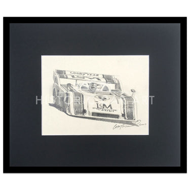 The Roger Penske entered Porche 917/10 of George Follmer during the 1972 Watkins Glen Can-Am race. Original pencil drawing by Craig Warwick.