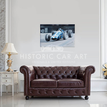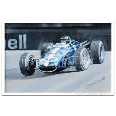 Dan Gurney and Eagle Westlake classic racing car print available on paper or canvas.