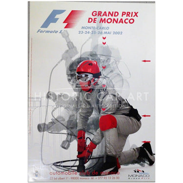An original poster for the 2002 Monaco Grand Prix. The race was won by David Coulthard for McLaren.