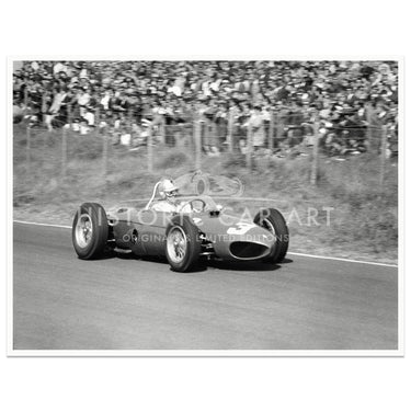This photograph shows the winner, Wolfgang von Trips, during the 1961 Dutch Grand Prix.