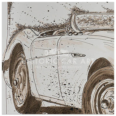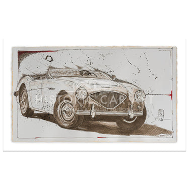 An art print of an Austin Healey 100MPH, from an original ink drawing.