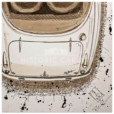 An art print from an original ink drawing of an Austin Healey 3000 2+2.
