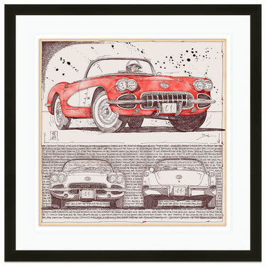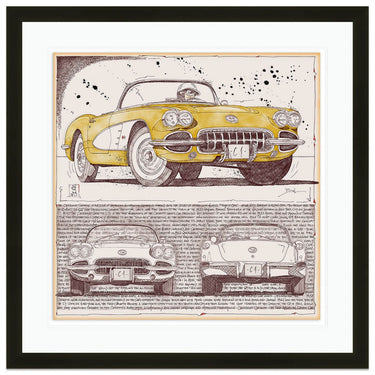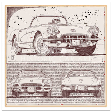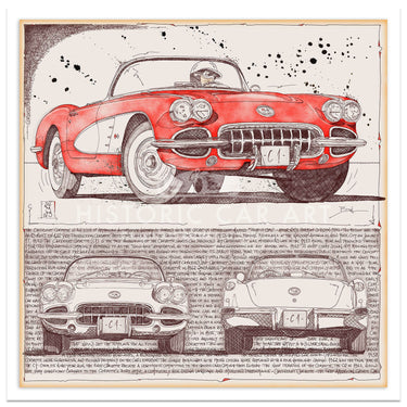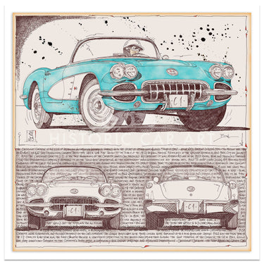 A three view art print of the Corvette C1, which was the 1st generation of Corvette Sports Cars, built by Chevrolet.