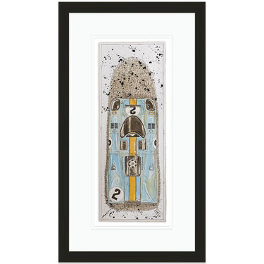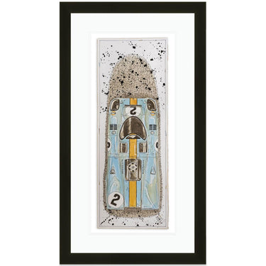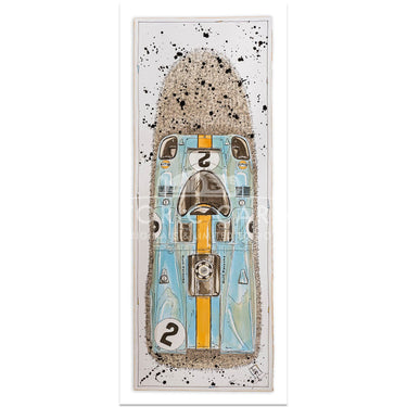 An art print from an original ink drawing of a Gulf Porsche 917.