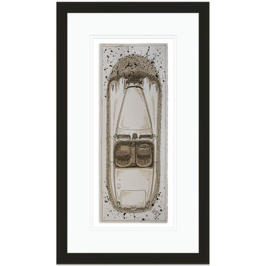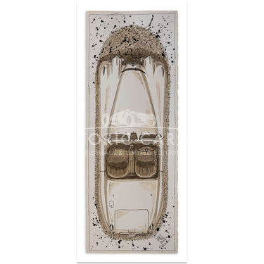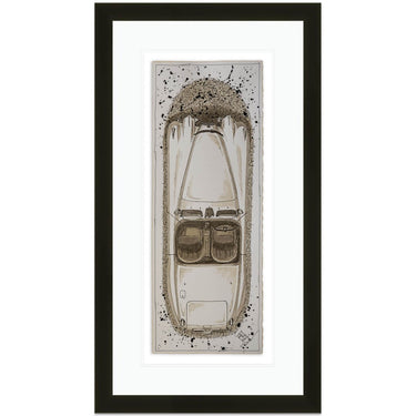 An art print from an original ink drawing of the top view of a Jaguar XK120.