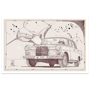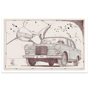 When it comes to creating his works there is lots of emotions involved. “That is part of my incentive” he says. “For me, cars were never just means of transport, but always emotional tin creatures that want to be loved or even hated.” This is reflected in his drawing style. Sterile straight lines, especially those drawn using a ruler, are no where to be seen in Becker’s work.