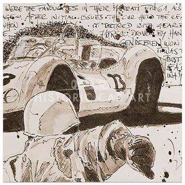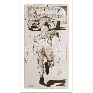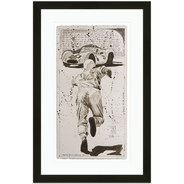 A Racing Legend, Stirling Moss running for his Maserati Birdcage at the 12 of hours Sebring 1960. Art print from an original ink drawing.