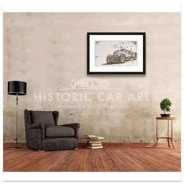 An art print from an original ink drawing of a Riley 12-4 Special.